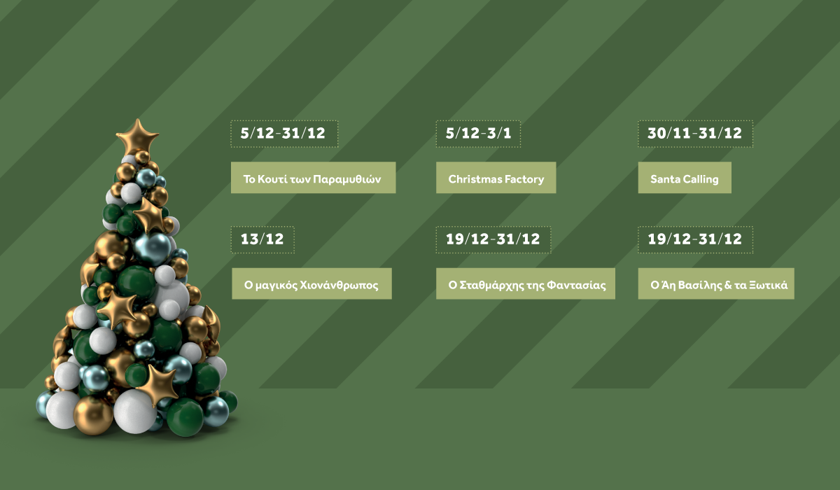 Ανακαλύψτε τον χριστουγεννιάτικο κόσμο του Mediterranean Cosmos: μια λαμπερή εμπειρία γεμάτη ζεστασιά, γιορτινή ενέργεια και στιγμές δημιουργίας. Χαρά, διασκέδαση και μοναδικά events μεταμορφώνουν κάθε επίσκεψη σε μια μικρή γιορτή.