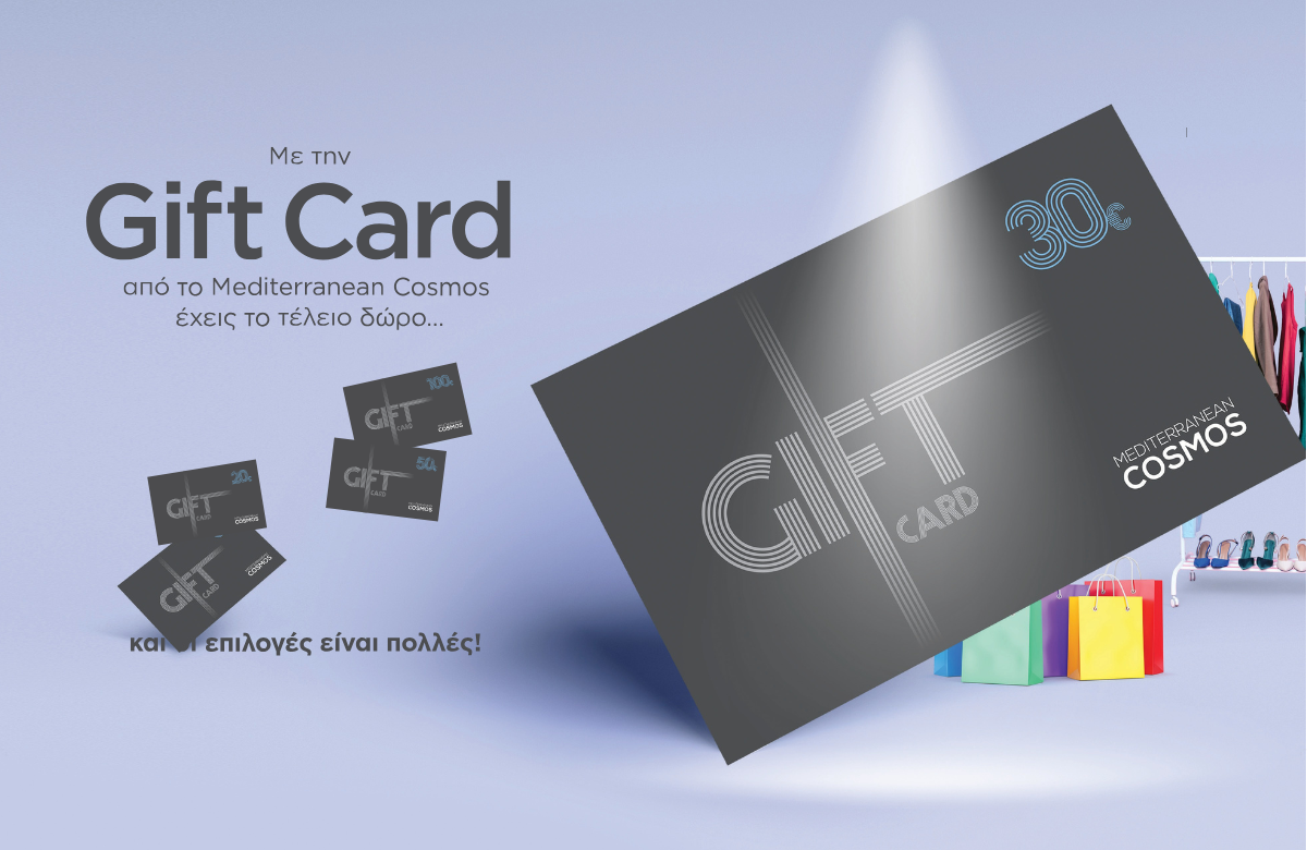 Το τέλειο δώρο για κάθε περίσταση! Μπορείτε να προμηθευτείτε Gift Cards αξίας 20, 30, 50€ ή 100€, που εξαργυρώνονται στα περισσότερα καταστήματα του εμπορικού κέντρου, από το Γραφείο Πληροφοριών.
