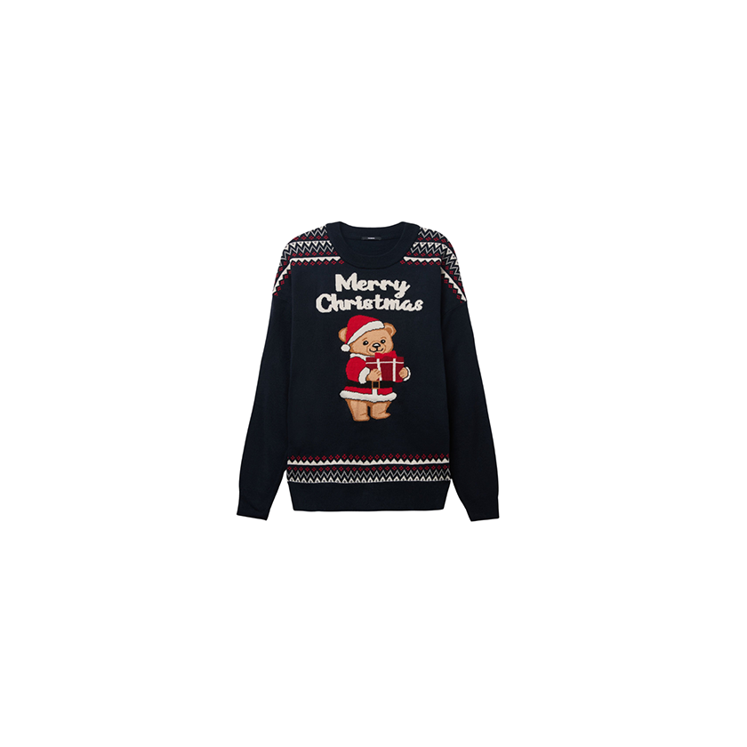 Μαύρο χριστουγεννιάτικο πουλόβερ με στρογγυλή λαιμόκοψη