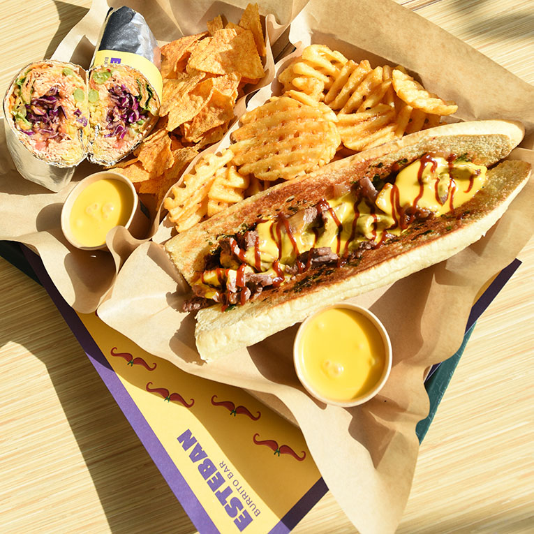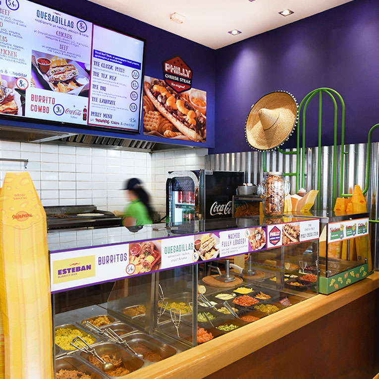 Περήφανο μέλος του Street Food Movement, το Esteban Burrito Bar σερβίρει όλα τα αρώματα και τις αυθεντικές γεύσεις του Μεξικού, τυλιγμένα σε φρεσκοψημένη τορτίγια, σε ένα μοντέρνο και funky περιβάλλον που θα λατρέψετε. Χορταστικά Burritos, λαχταριστά Nachos και Churros που θα σας κάνουν να γλείφετε τα δάχτυλά σας, σε μια μεξικάνικη fiesta, που δεν πρέπει να χάσετε!