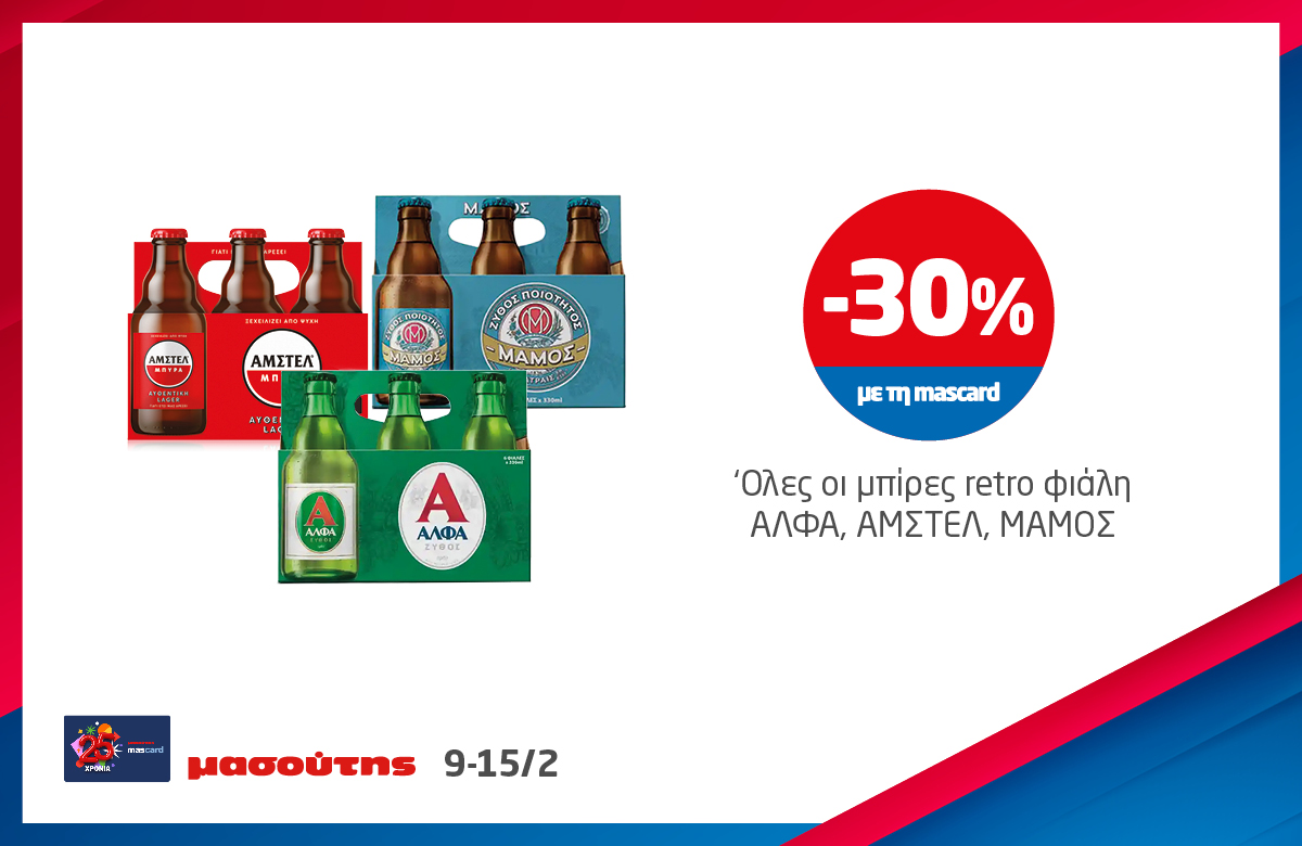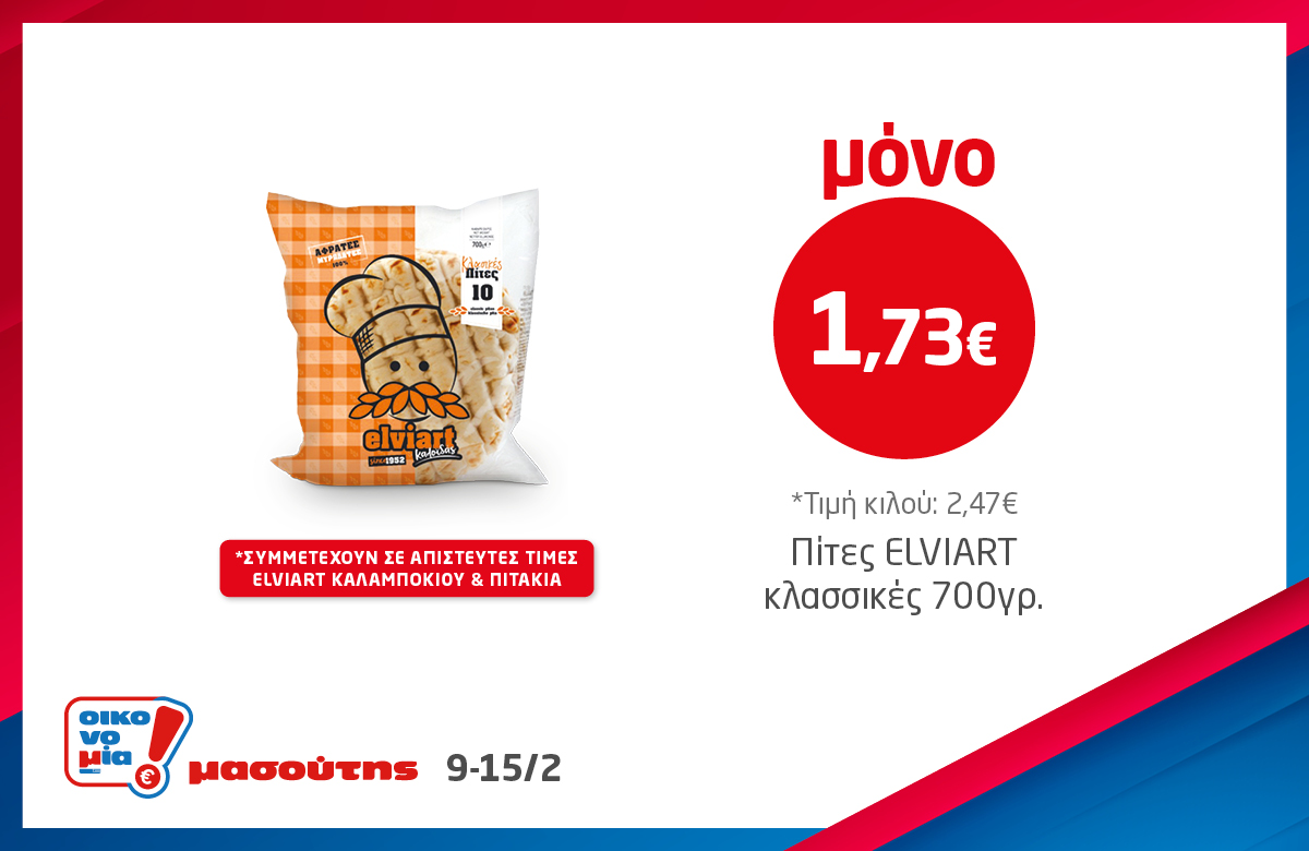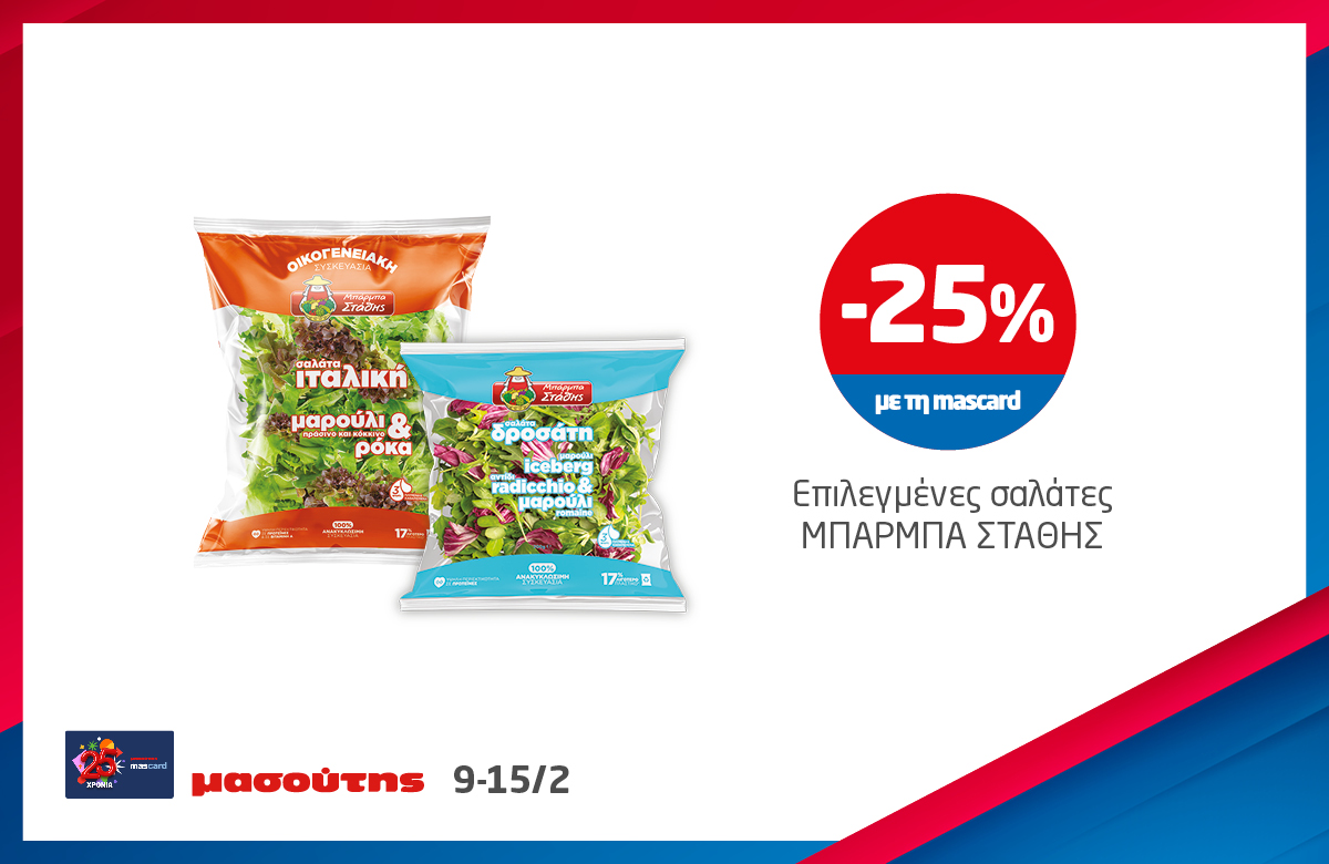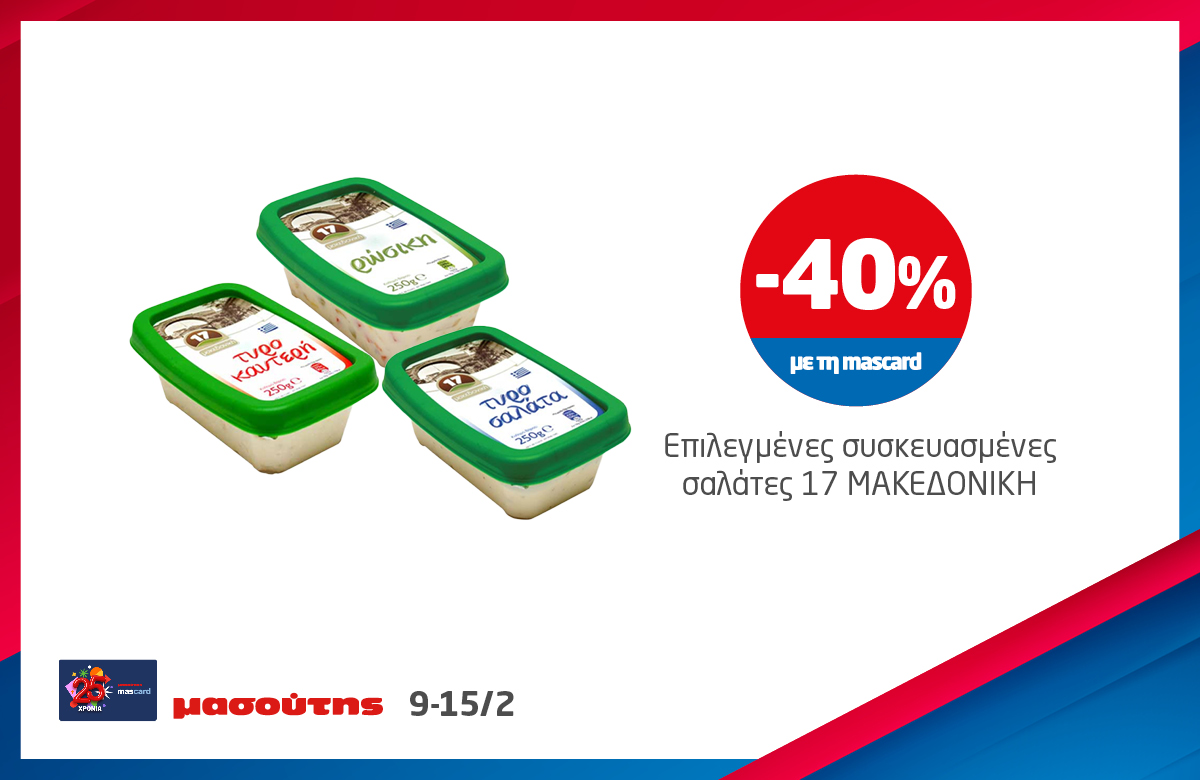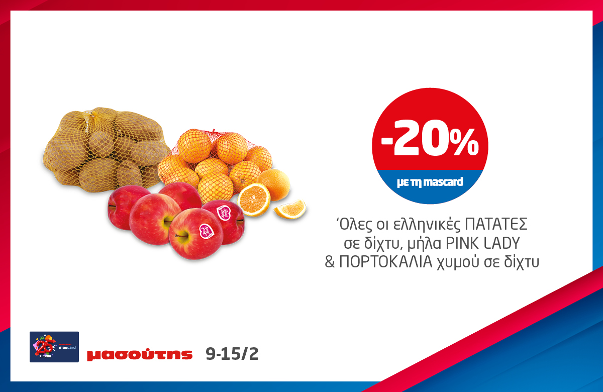 *Ισχύει στα καταστήματα λιανικής ΜΑΣΟΥΤΗΣ μέχρι εξαντλήσεως των αποθεμάτων, έως 3 τεμάχια ανά Α.Φ.Μ. Σε παράλληλες προωθητικές ενέργειες ισχύει η μεγαλύτερη προσφορά.