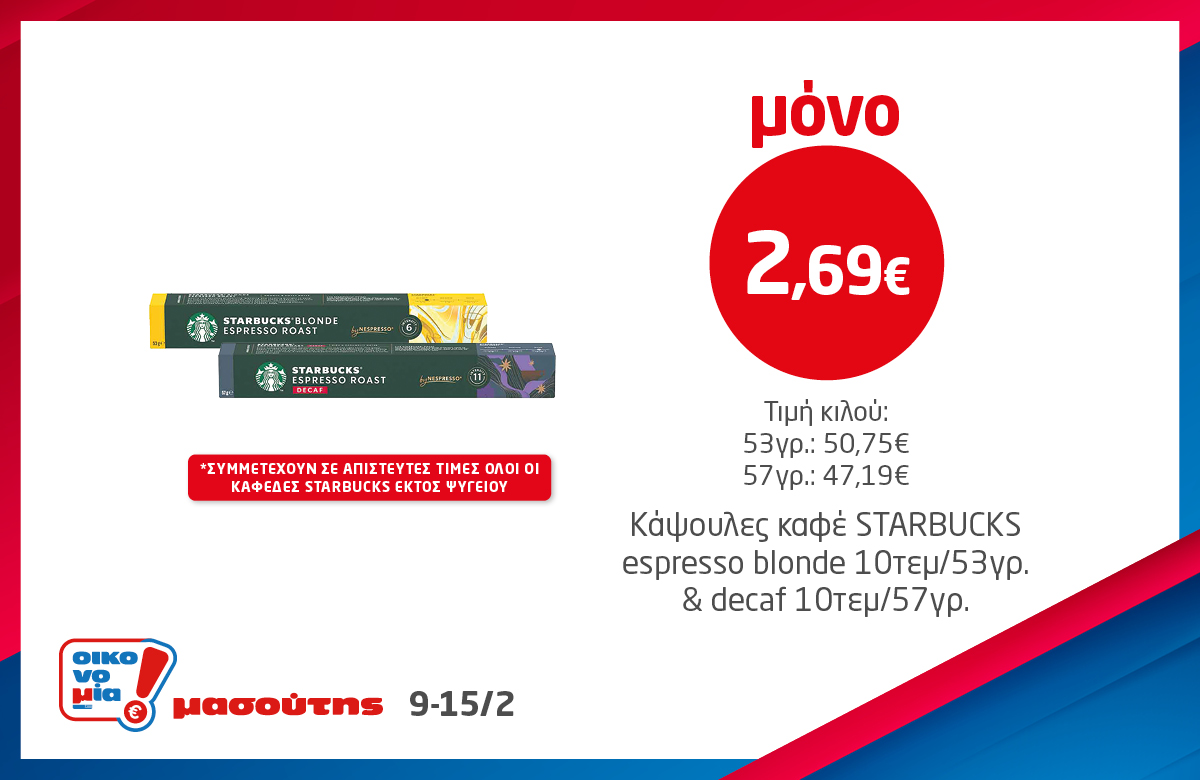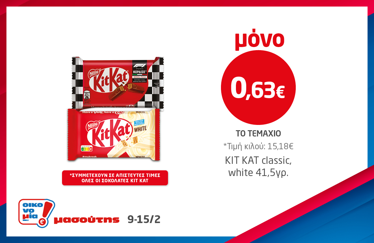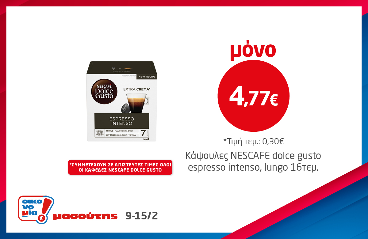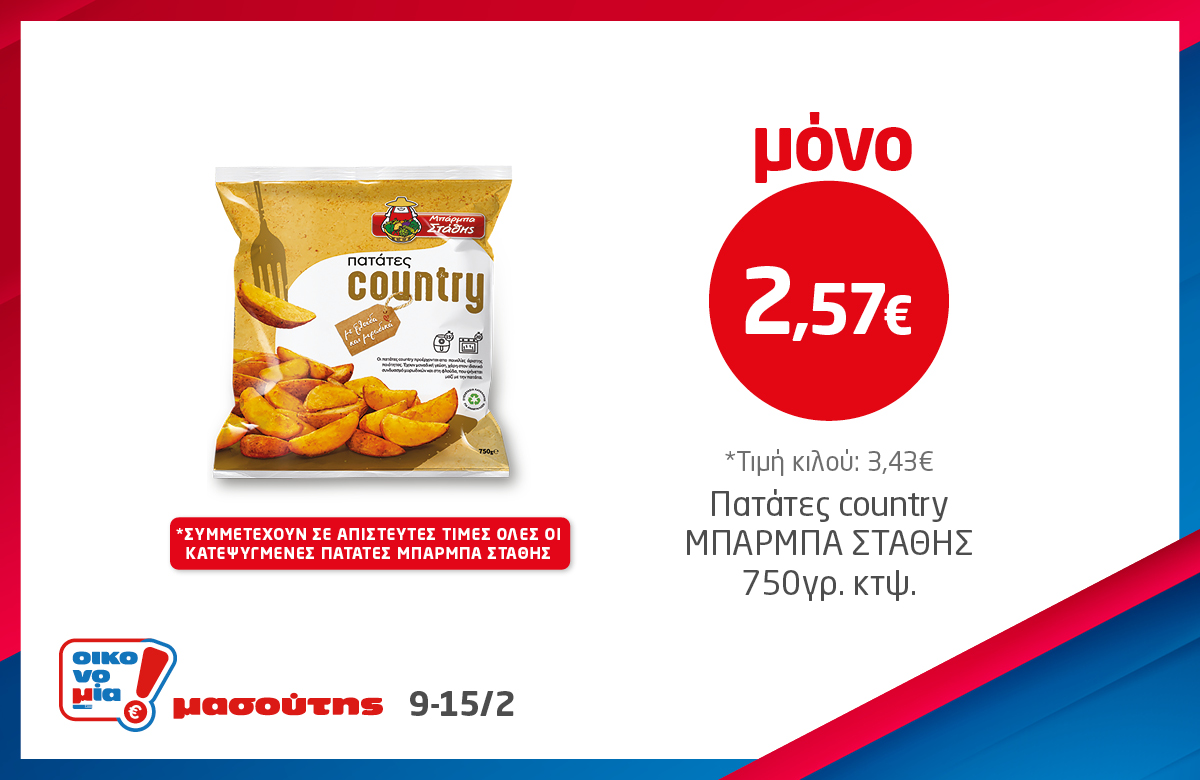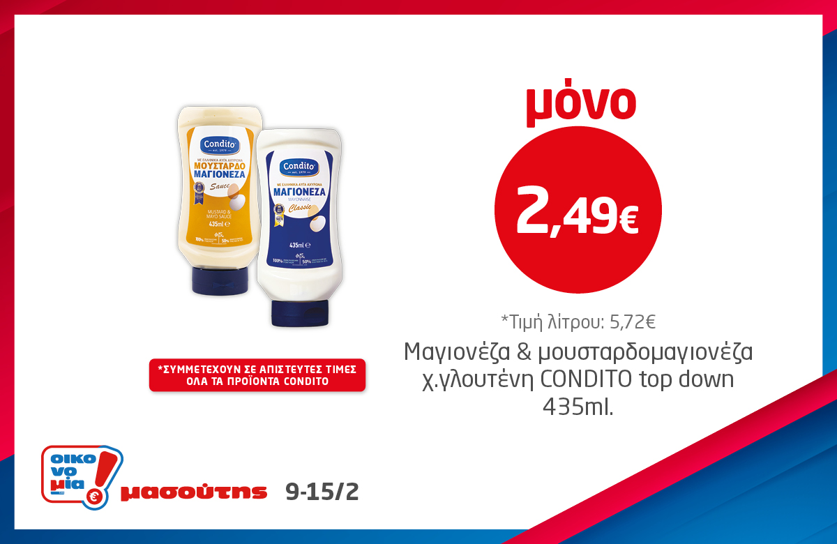 *Ισχύει στα καταστήματα λιανικής ΜΑΣΟΥΤΗΣ μέχρι εξαντλήσεως των αποθεμάτων, έως 3 τεμάχια ανά Α.Φ.Μ. Σε παράλληλες προωθητικές ενέργειες ισχύει η μεγαλύτερη προσφορά.