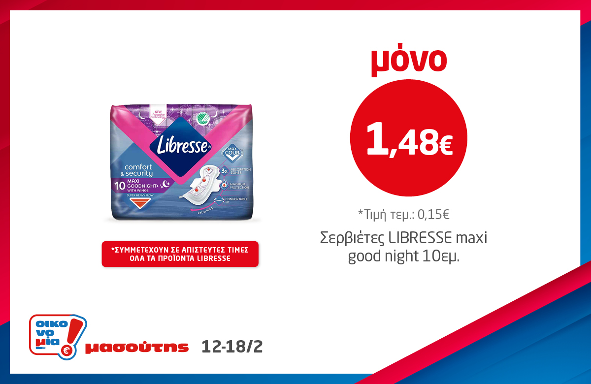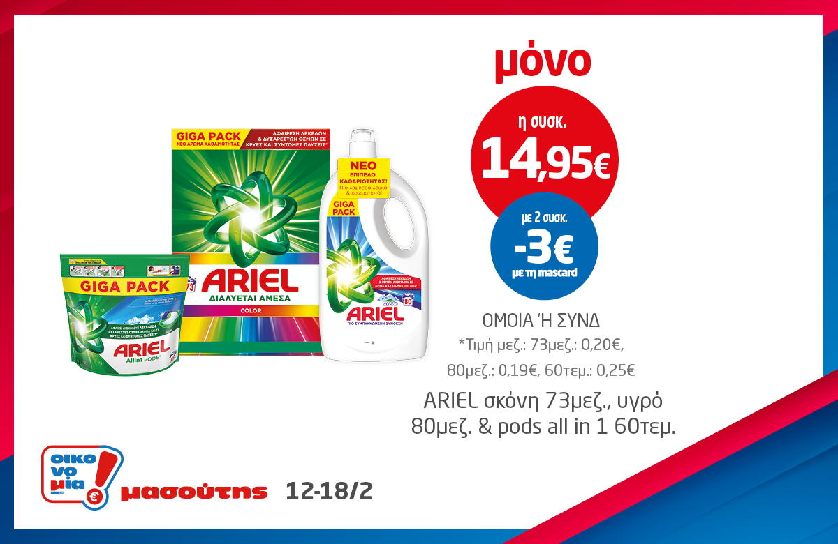 *Ισχύει στα καταστήματα λιανικής ΜΑΣΟΥΤΗΣ μέχρι εξαντλήσεως των αποθεμάτων, έως 3 τεμάχια ανά Α.Φ.Μ. Σε παράλληλες προωθητικές ενέργειες ισχύει η μεγαλύτερη προσφορά.