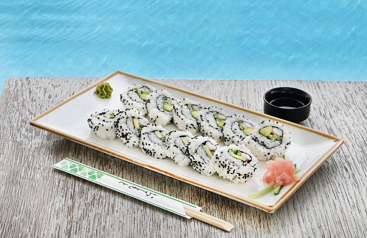 KOI: Γευτείτε την Ασία με 1+1 Inside-out roll, όπως το δημοφιλές California Roll με surimi, avocado και wasabi mayo.