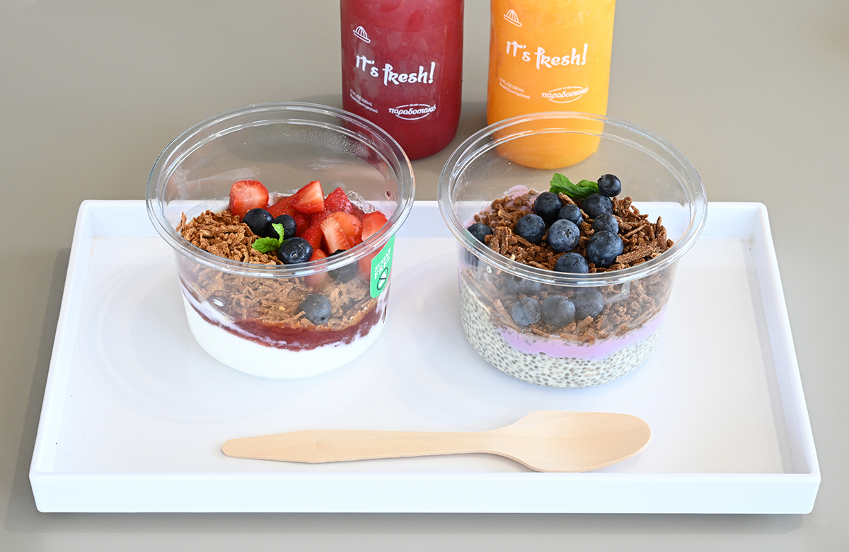Το γιαούρτι παραμένει διαχρονική επιλογή για όσους θέλουν κάτι ελαφρύ, αλλά χορταστικό. Στα Starbucks, μπορείτε να απολαύσετε γιαούρτι με δημητριακά, μέλι και αποξηραμένη μπανάνα, συνδυάζοντάς το με ένα δροσερό Strawberry Açaí Refresher. Αν προτιμάτε κάτι πιο παραδοσιακό, το Παραδοσιακό προτείνει στραγγιστό γιαούρτι 2% με φράουλες, μύρτιλλα και μαρμελάδα φράουλας με στέβια – ή ένα θρεπτικό Chia Pudding με superfoods. Στο Plaisir, το ελληνικό αγελαδινό γιαούρτι αναβαθμίζεται γευστικά με φρέσκα φρούτα, δημητριακά και μέλι – ένας συνδυασμός που θυμίζει παιδικές αναμνήσεις.