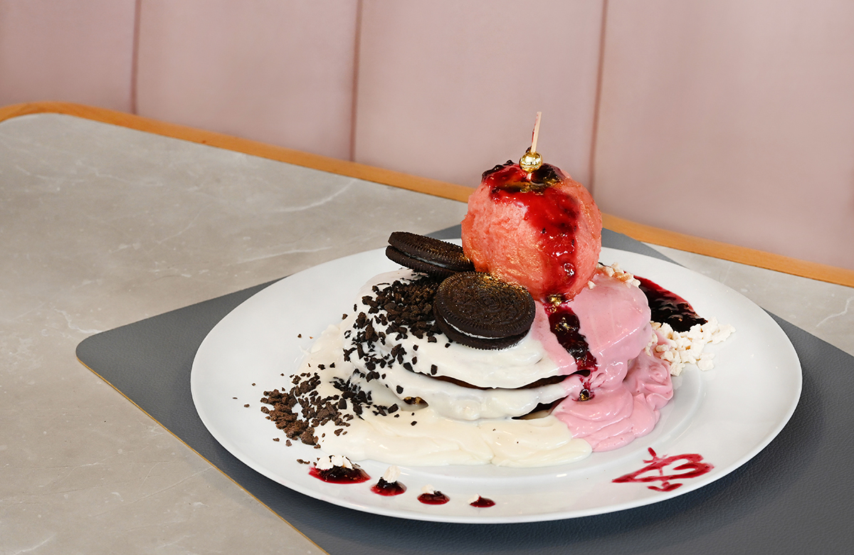 At Café Brulée, Red Velvet Oreo pancakes topped with white praline, strawberry praline, Oreo cookies, red berries, ice cream and raspberry crunch feel made for Instagram-worthy moments — but they’re just as perfect for sharing and creating a fun dessert experience together.