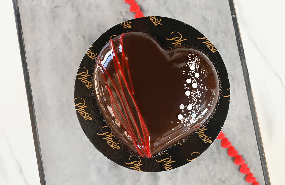 For a bold Valentine’s gesture, Plaisir’s heart-shaped cake, finished with glossy chocolate glaze and filled with velvety chocolate mousse, is the ultimate chocolate love statement. It’s the kind of dessert that impresses at first sight and completes any romantic table setting effortlessly.