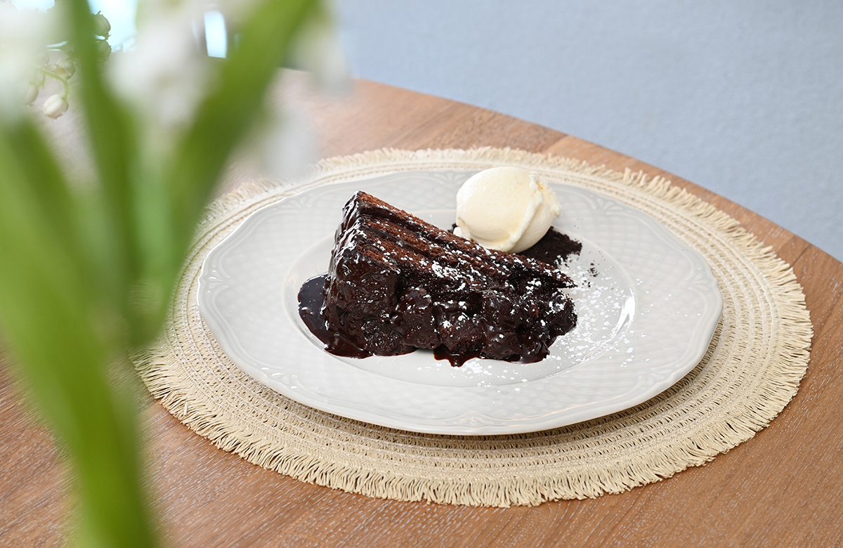 Keeping the indulgent mood strong, Chocolate Lover by ToThelo Gastrobar is a rich layered cake featuring silky chocolate ganache and chocolate coating, served with ice cream for an extra-decadent experience that balances richness with smooth texture.